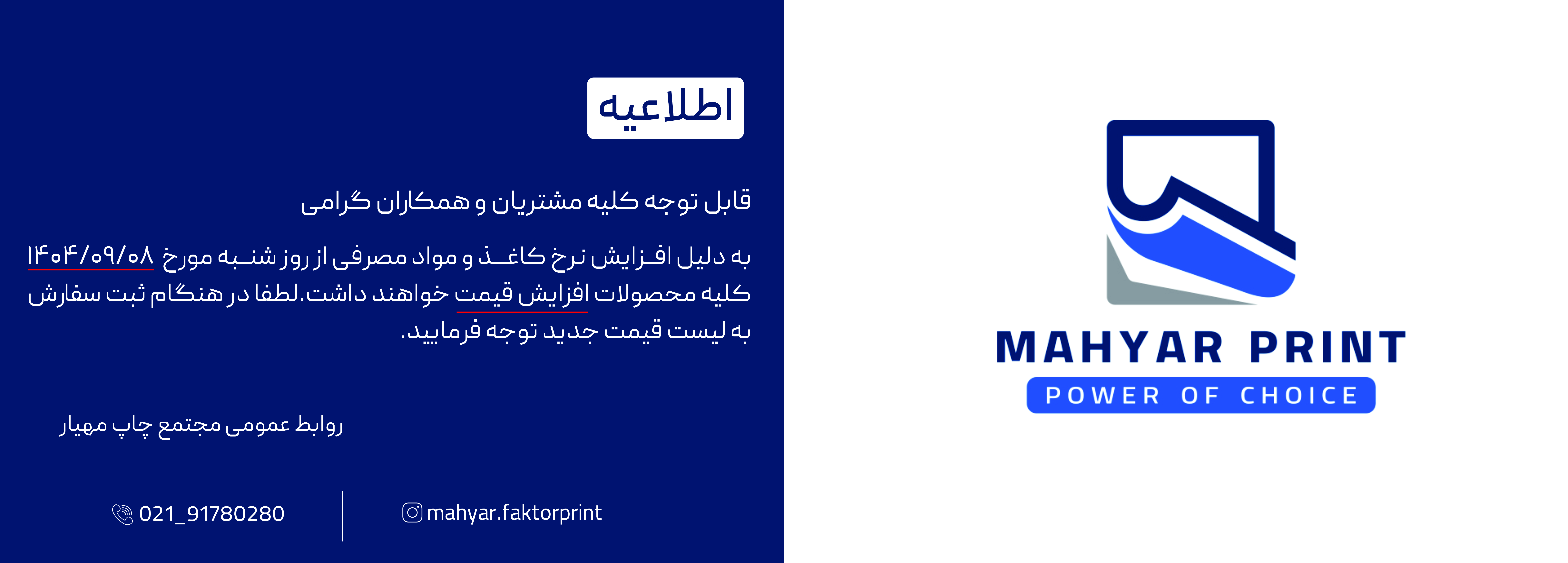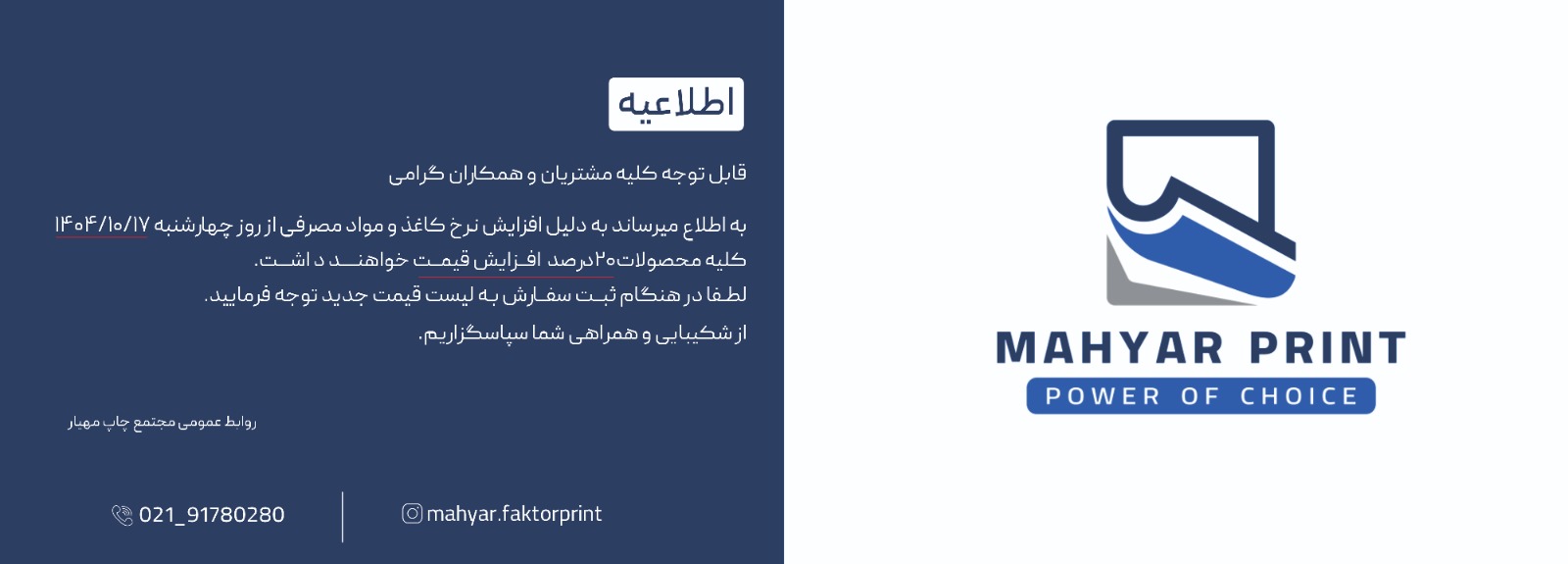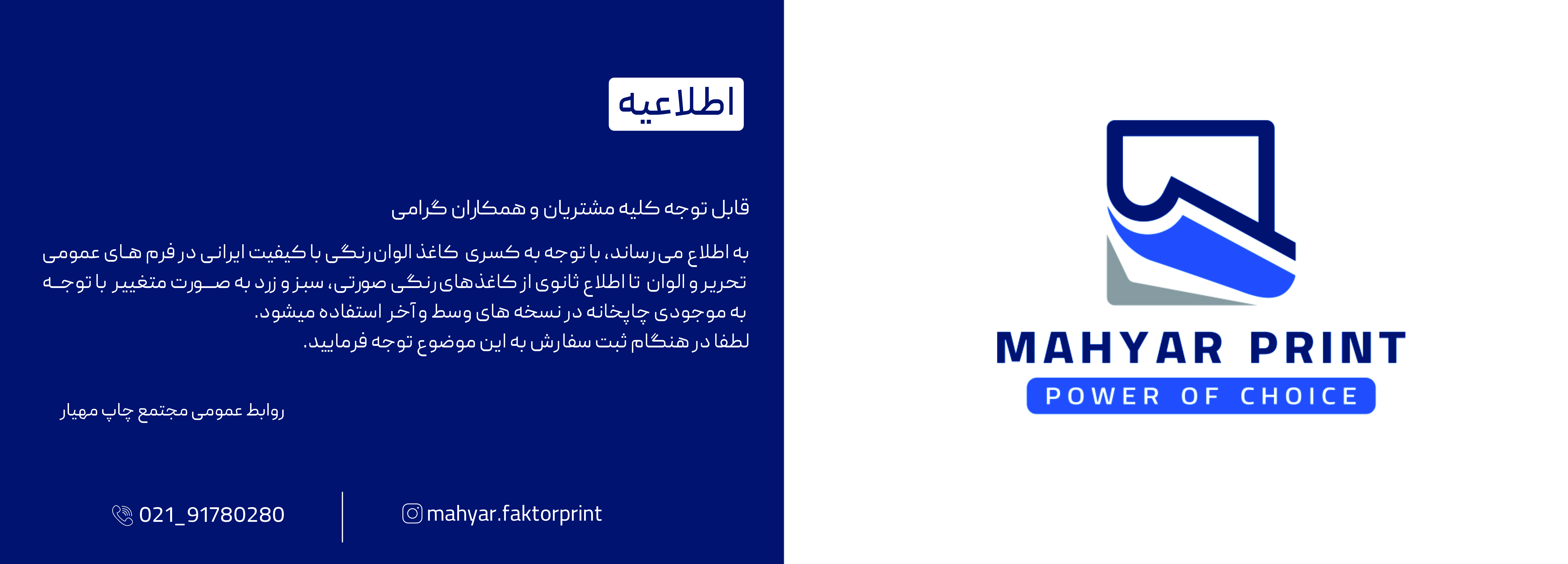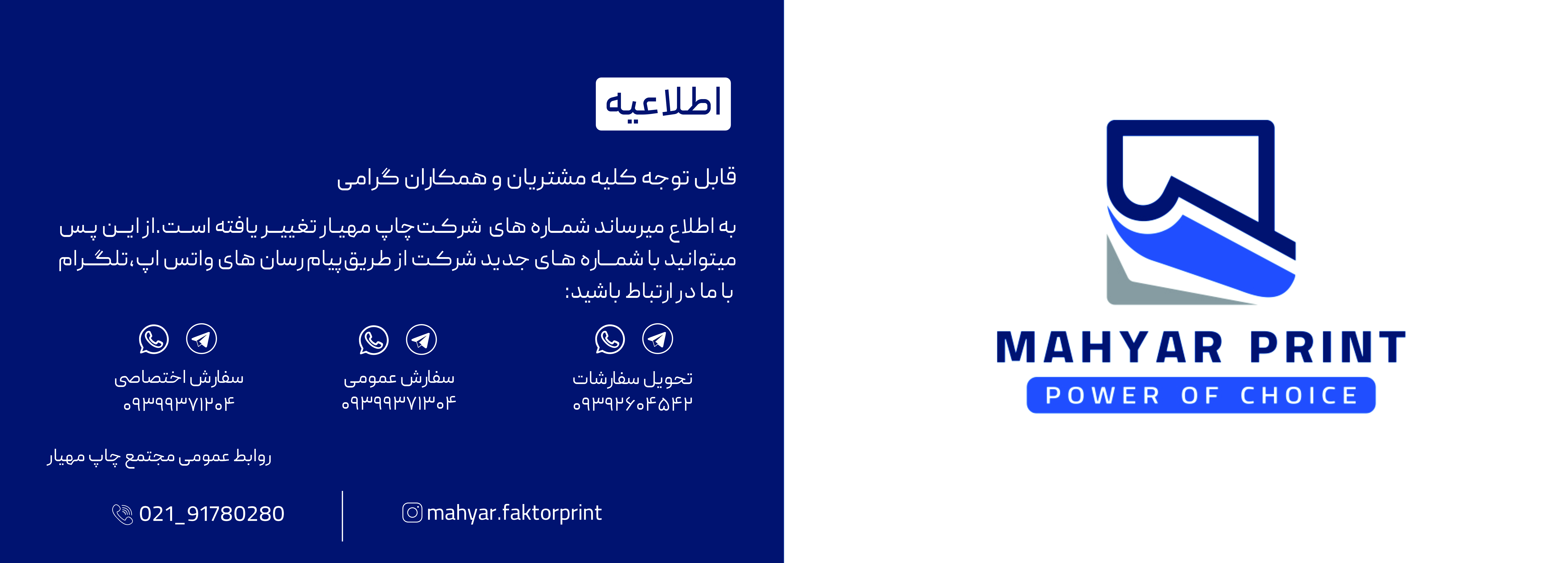 برای اخذ نمایندگی فروش فاکتور آماده مجتمع چاپ مهیار با این مجتمع چاپ ( مجتمع چاپ مهیار ) و قسمت مارکتینگ تماس بگیرید