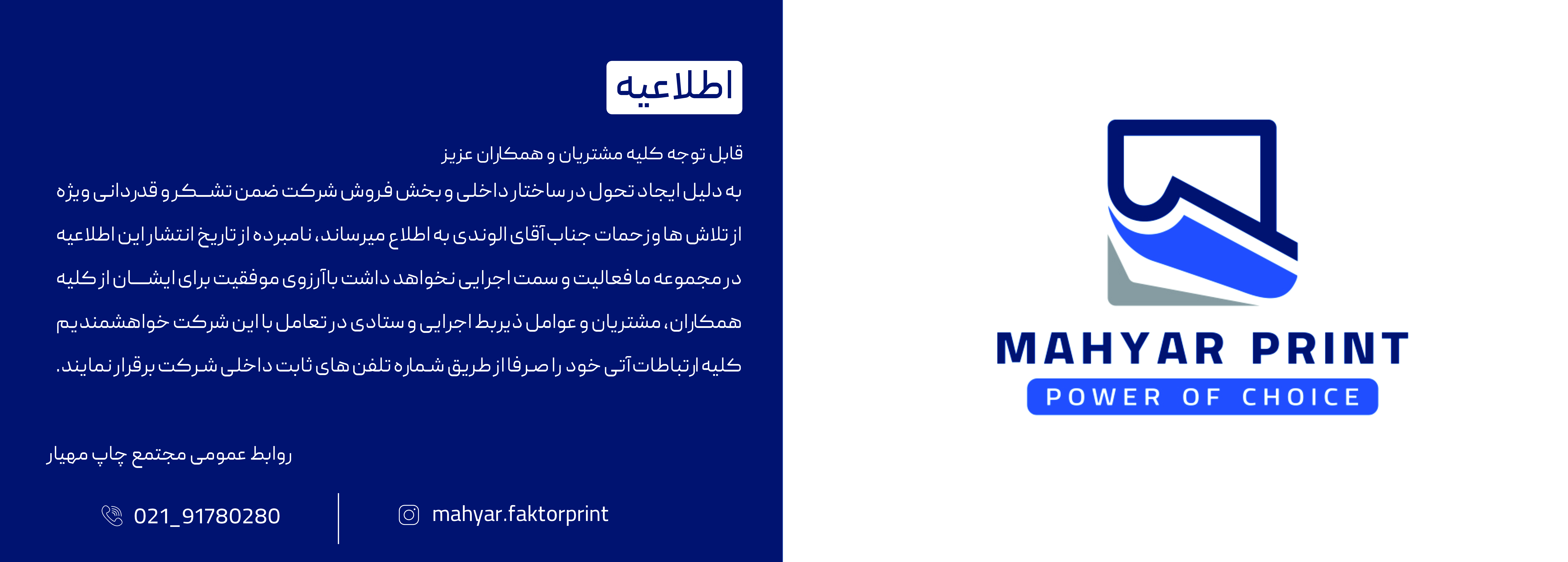 برای اخذ نمایندگی فروش فاکتور آماده مجتمع چاپ مهیار با این مجتمع چاپ ( مجتمع چاپ مهیار ) و قسمت مارکتینگ تماس بگیرید